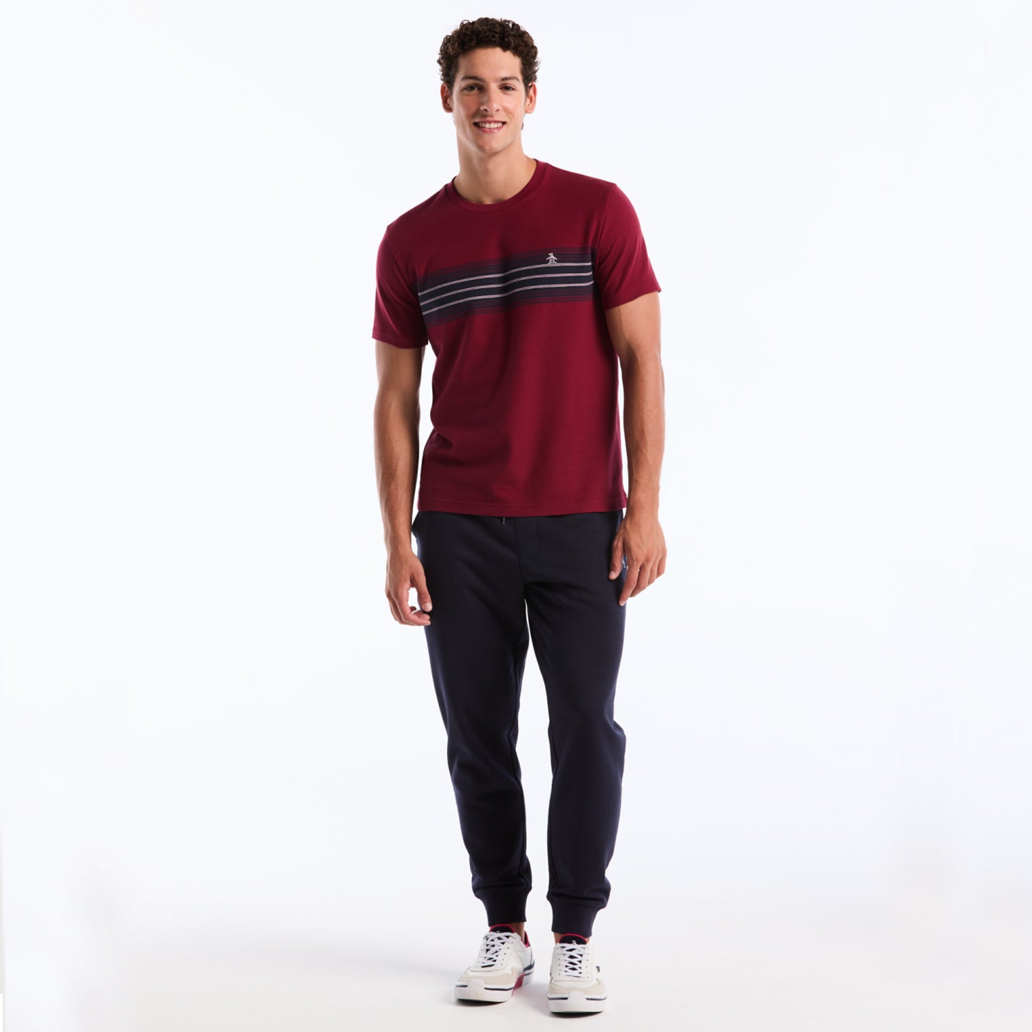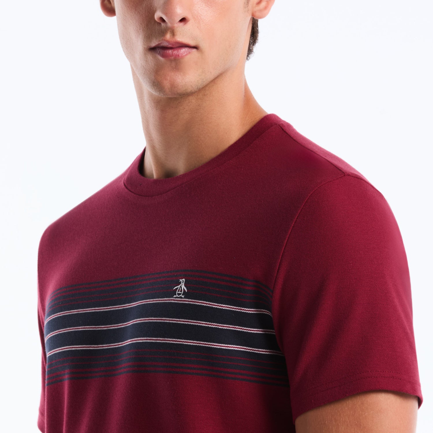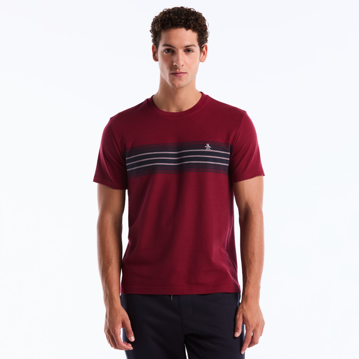 Renueva tu armario casual con esta elegante camiseta Original Penguin para hombre. Esta versátil camiseta luce un estampado de rayas en el pecho que le da un toque clásico. Su tejido piqué transpirable garantiza comodidad durante todo el día, mientras que su corte entallado ofrece una silueta moderna que combina a la perfección con todo, desde vaqueros hasta chinos.