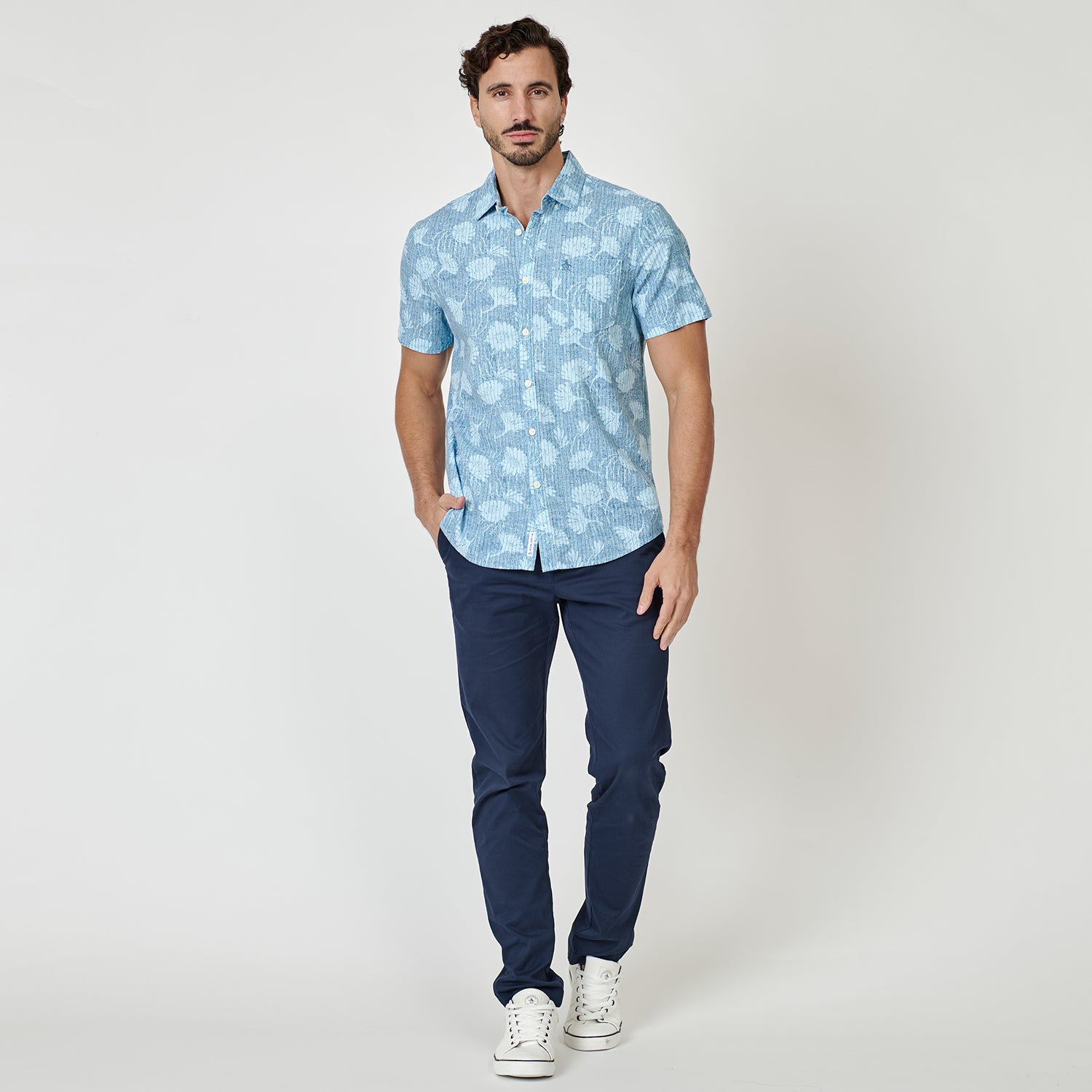 Renueva tu guardarropa con esta camisa manga corta eco cambray full print floral que combina diseño contemporáneo con comodidad excepcional.