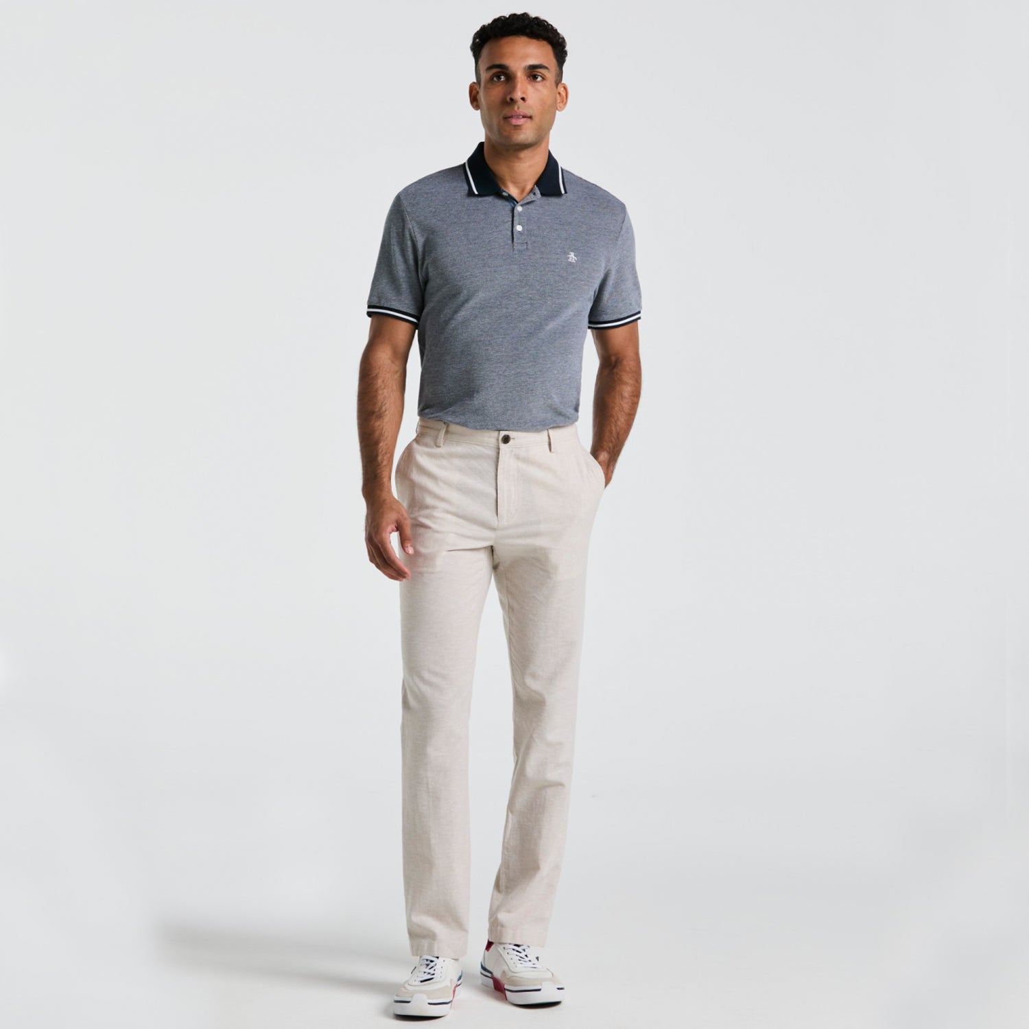 Confort algodonero con toque de lino: este pantalón chino slim Original Penguin combina suavidad de algodón con la frescura del lino y acabado PC dye para un look relajado y pulido.