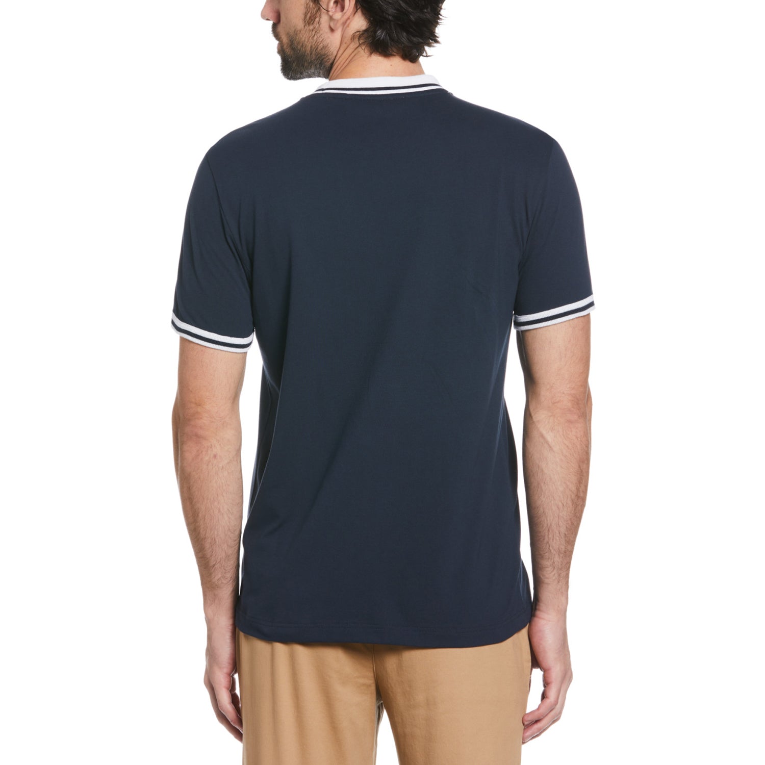Dale un toque de distinción a tus básicos con esta camiseta de cuello redondo Original Penguin. Esta elegante camiseta para hombre está confeccionada en una mezcla de algodón orgánico con tejido de piqué para una textura sutil. Su moderno corte entallado, el cómodo cuello acanalado y los ribetes en contraste la convierten en la prenda perfecta para tu armario.