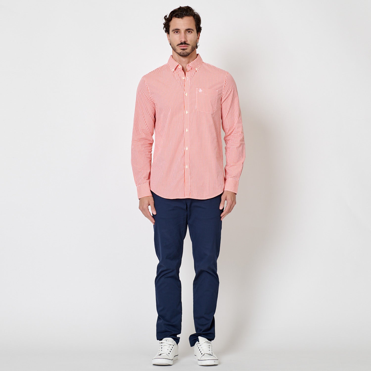 Esta camisa de manga larga abotonada le da un toque elegante a cualquier armario. Su atemporal estampado de cuadros vichy combina fácilmente con el trabajo y el ocio. Su tejido liso le confiere mayor durabilidad y elasticidad, adaptándose a tus movimientos para una comodidad total.