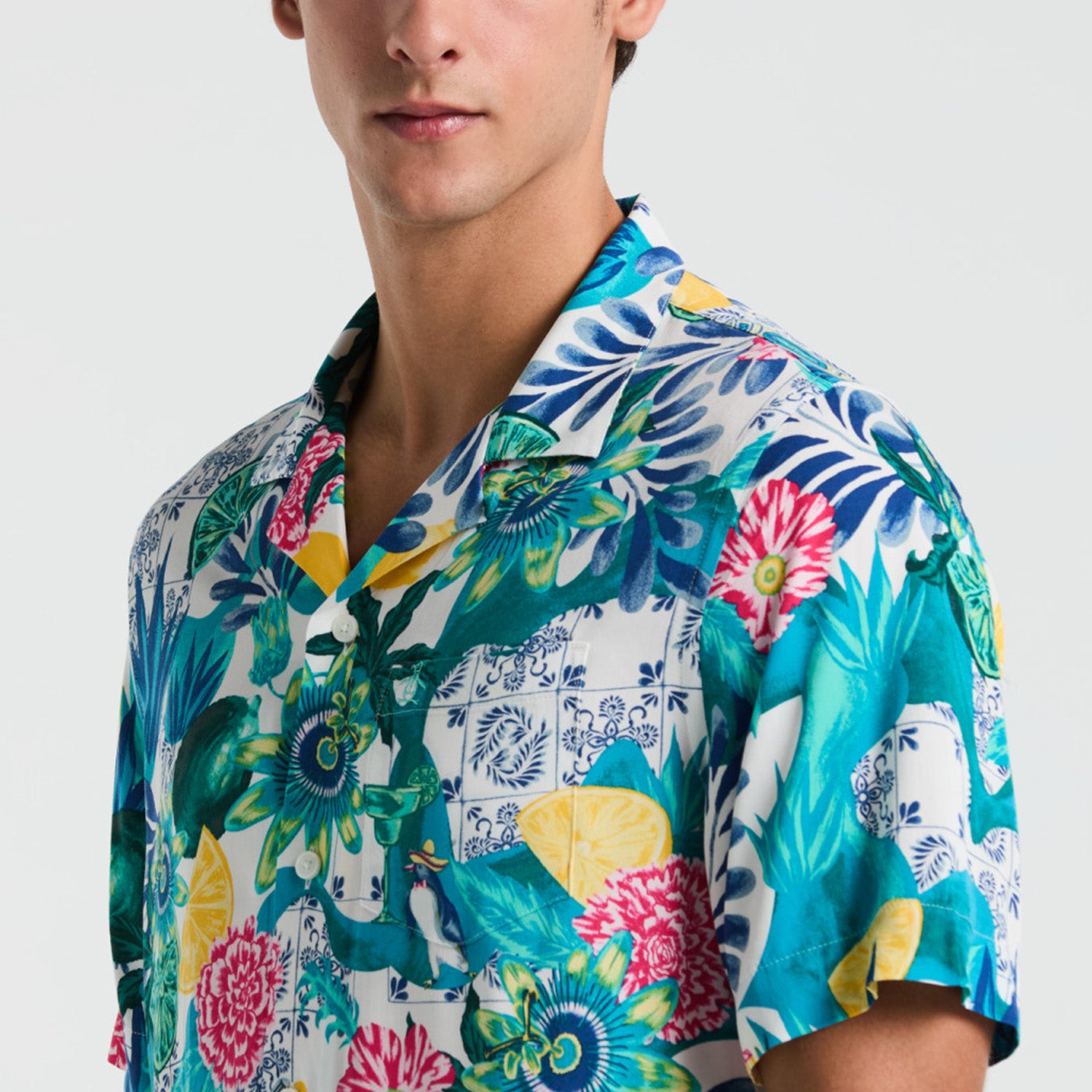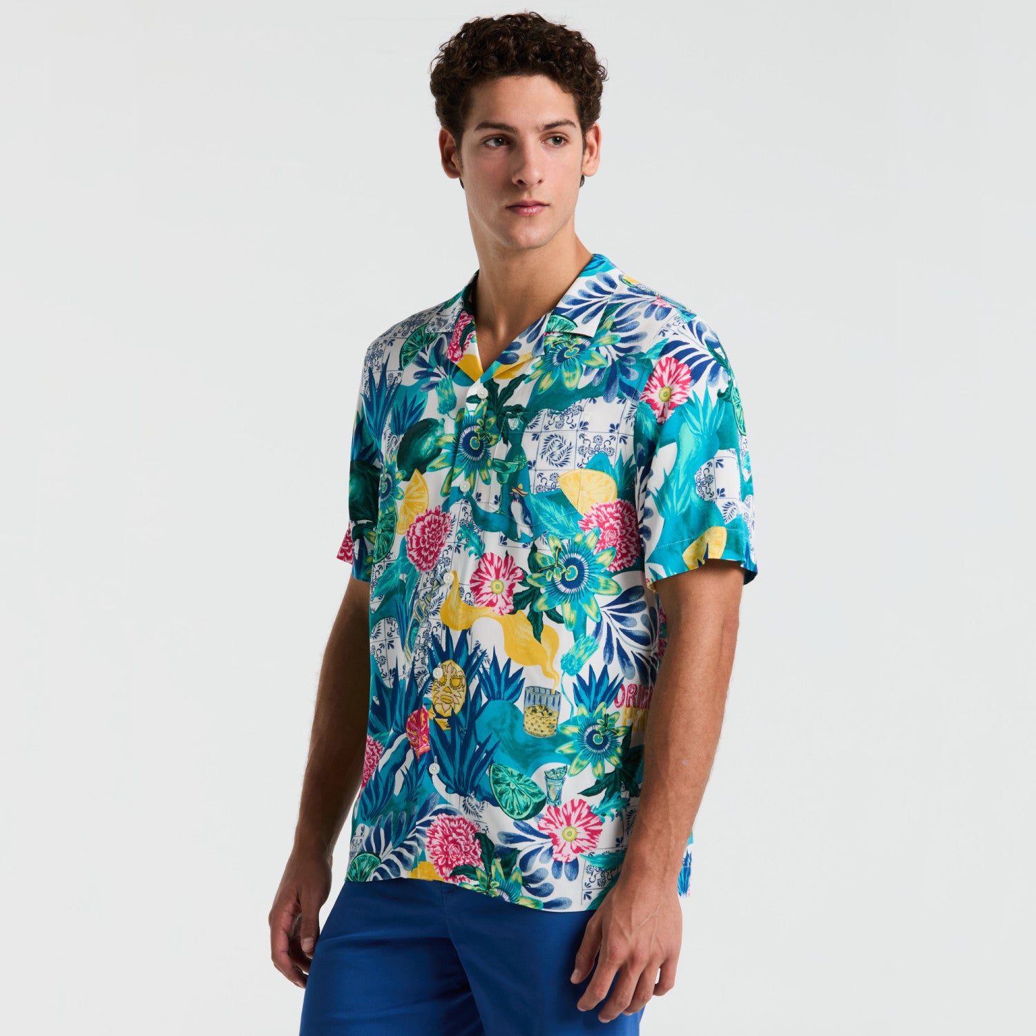 Esta camisa de manga corta en viscosa es perfecta para un look colorido y primaveral. Con su estampado floral de colores vibrantes, te hará destacar en cualquier ocasión. Además, su tela suave y fresca te brindará comodidad y estilo. ¡Hazte con ella ahora y dale a tu armario un toque de alegría!