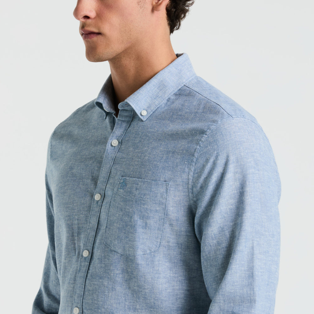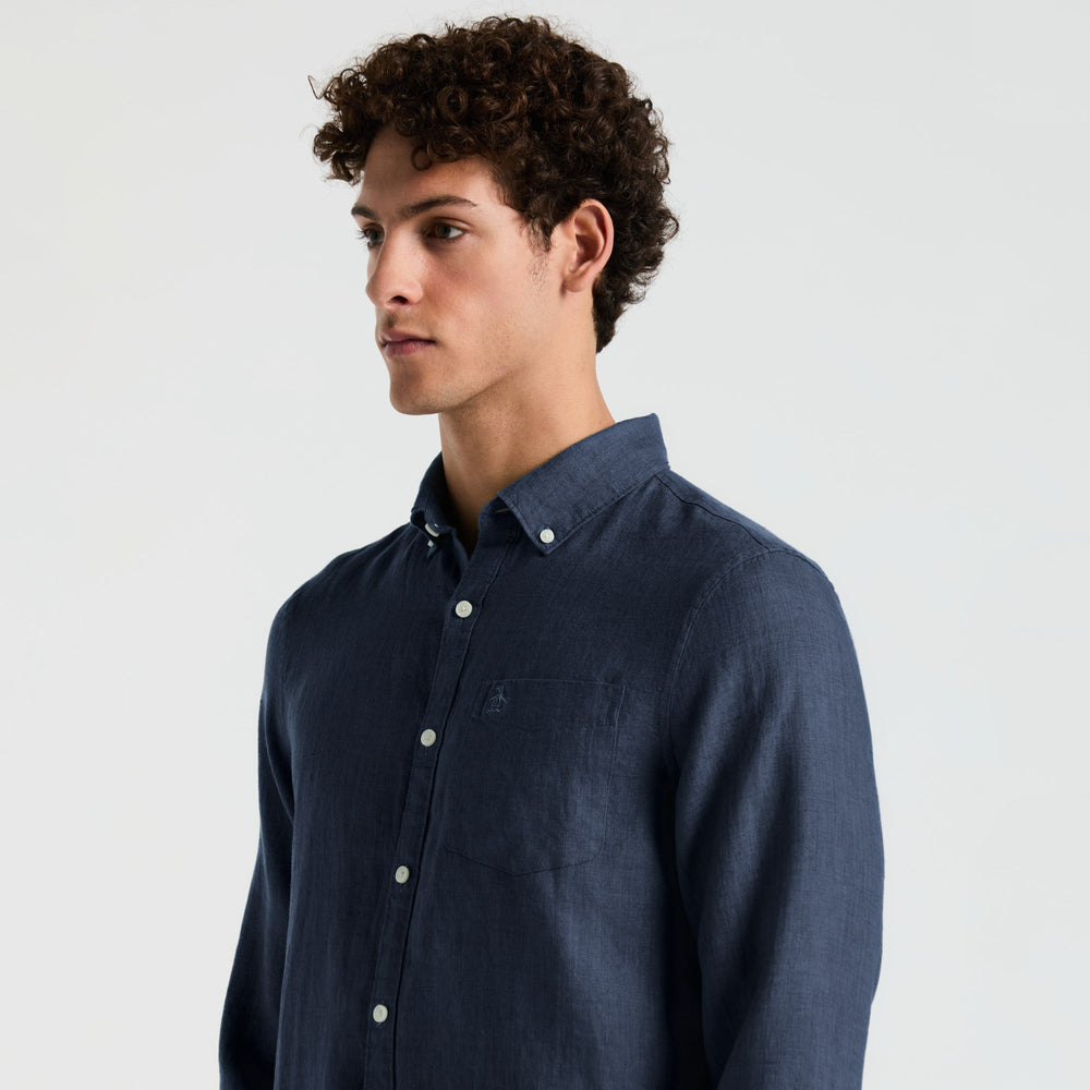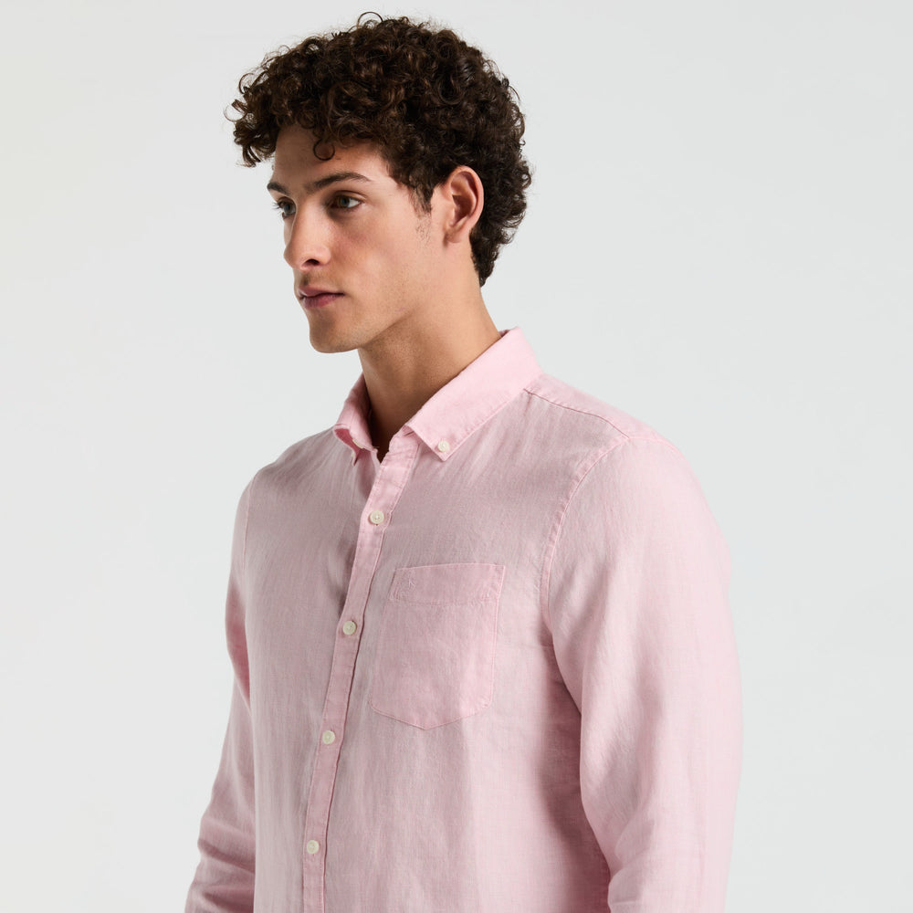 Camisa Manga Larga Lino Delave Con Bolsillo