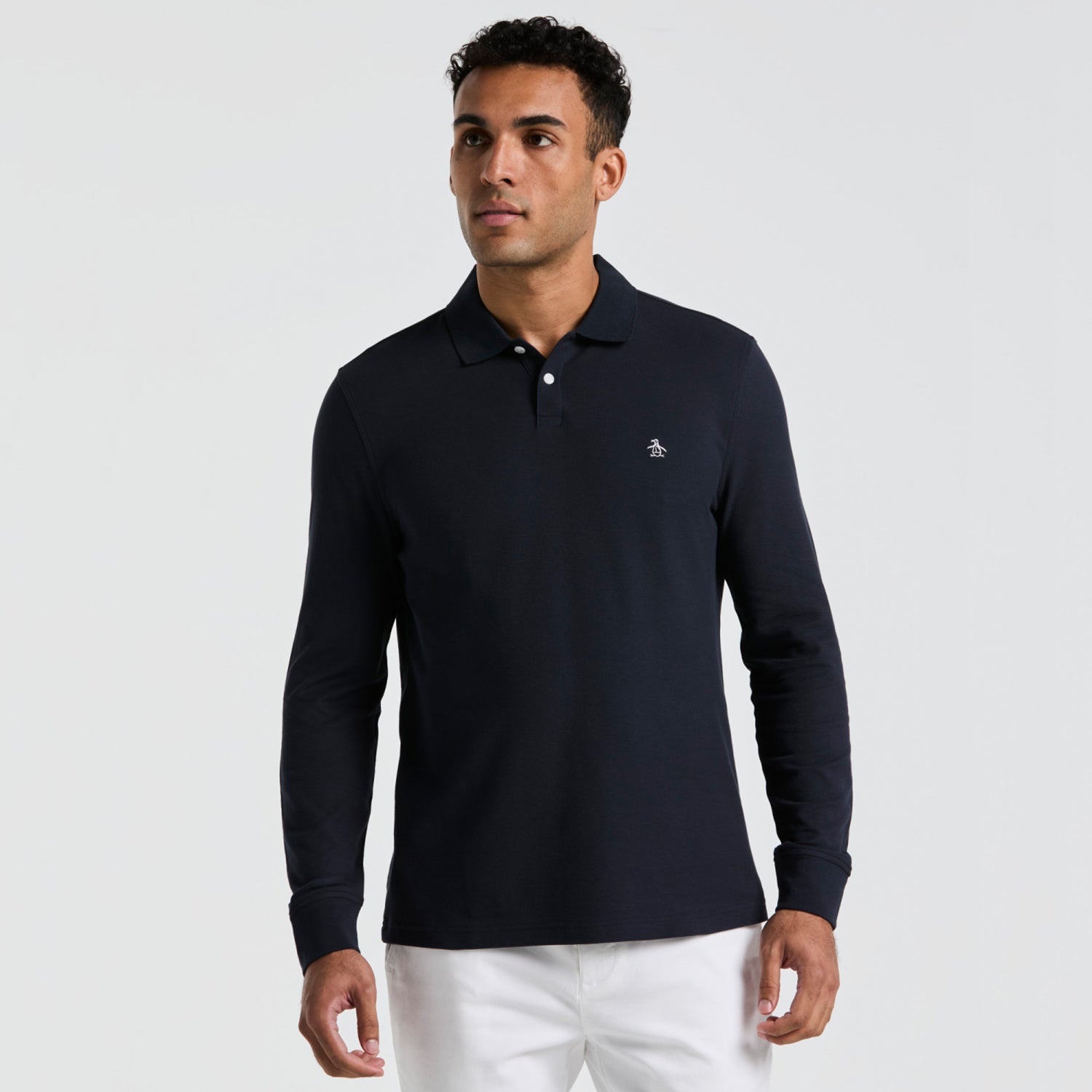 Lleva tu estilo de polo a nuevas alturas con este polo de manga larga para hombre de Original Penguin. Su versátil color liso combina a la perfección con una amplia gama de prendas inferiores, y el cuello de polo acanalado con tapeta de dos botones le da un look de polo atemporal. Está confeccionado en piqué, con cordones en relieve en la superficie del material para una textura sutil que garantiza que esta camisa de corte entallado se sienta tan bien como luce.