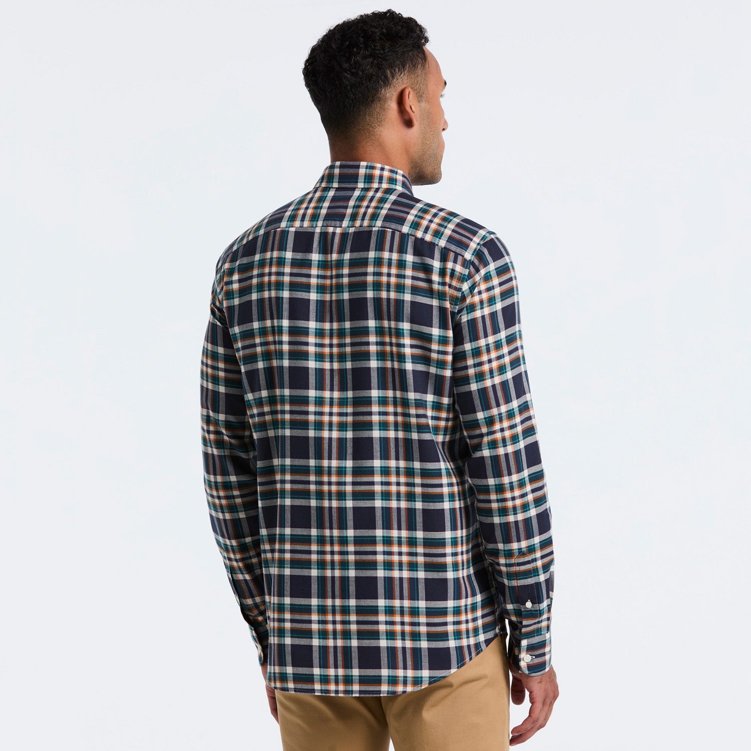 Añade sofisticación a tu armario con esta camisa manga larga a cuadros de corte impecable y diseño atemporal.