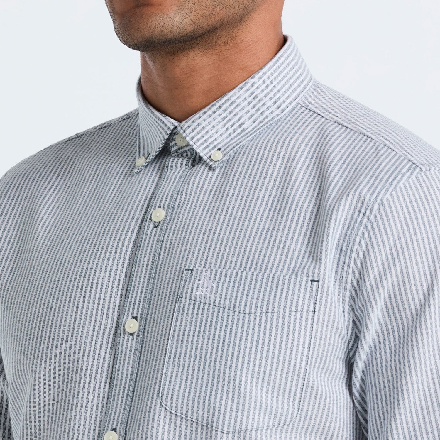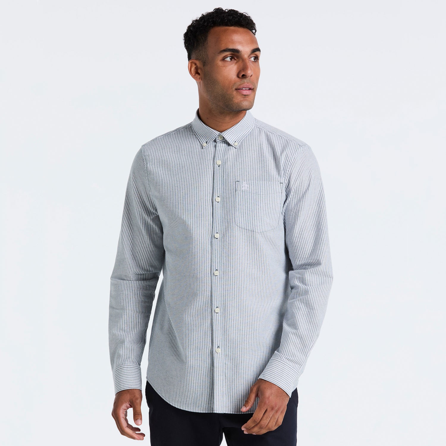 Perfecciona tu look con esta elegante camisa manga larga de algodón oxford a rayas. Confeccionada con atención al detalle, ofrece estilo y comodidad durante todo el día.