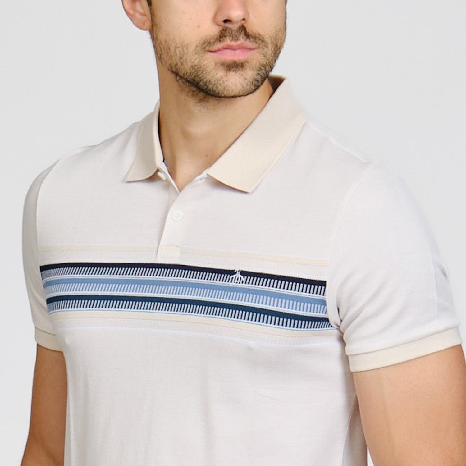 Mejora tu estilo deportivo con este polo birdseye pique con franjas en pecho de Original Penguin. Combina elegancia casual con comodidad superior.