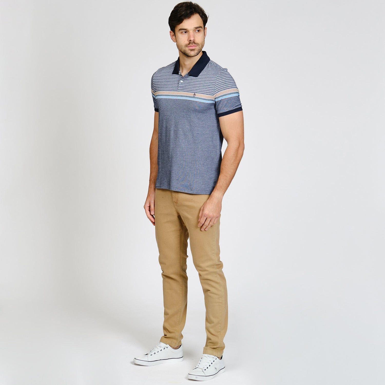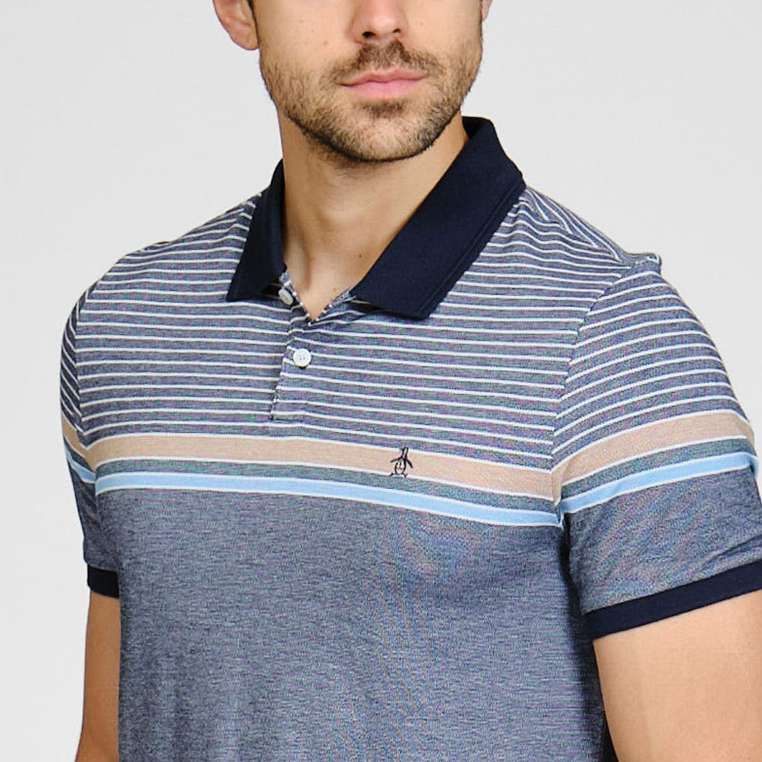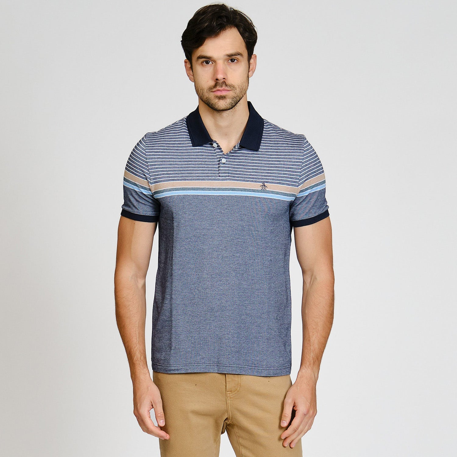 Mejora tu estilo deportivo con este polo birdseye pique con franjas en pecho de Original Penguin. Combina elegancia casual con comodidad superior.