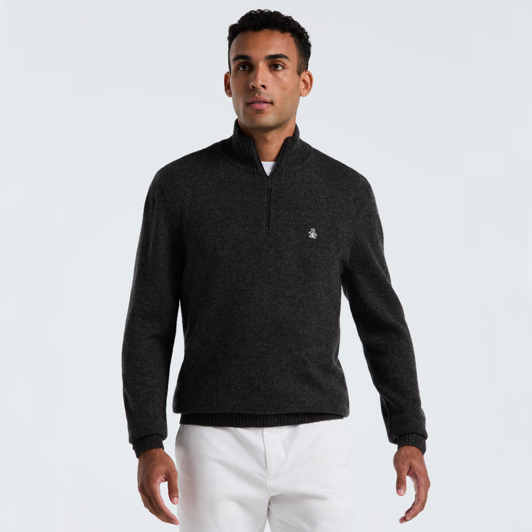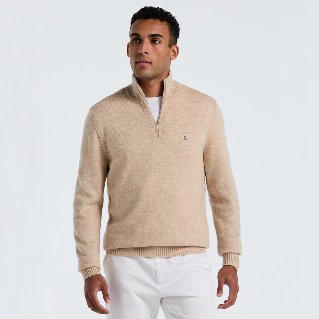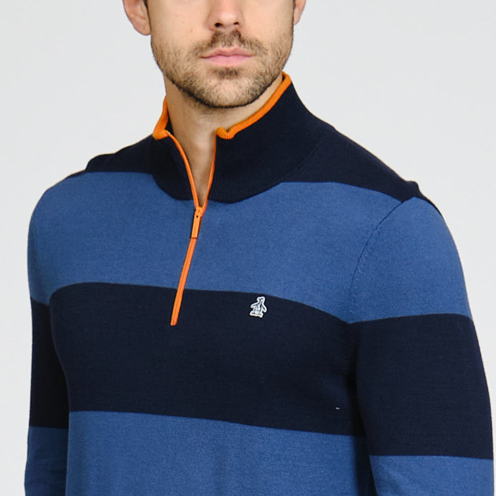 Sueter De Algodón Con Cierre 1/4 Y Franja En Pecho