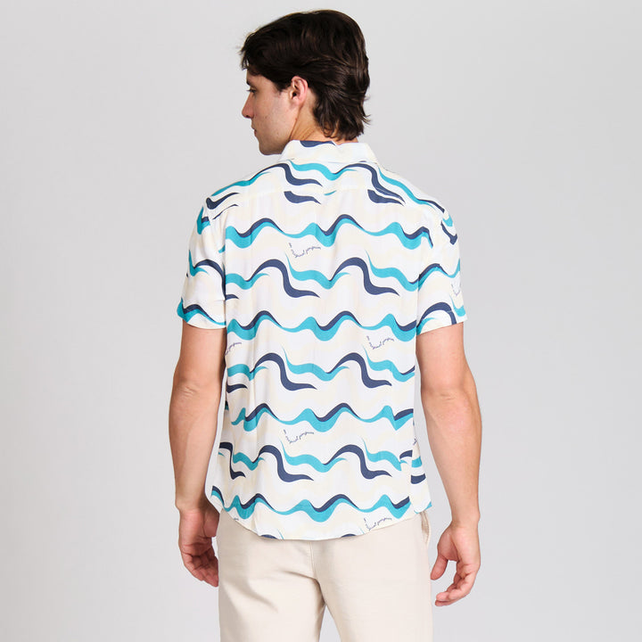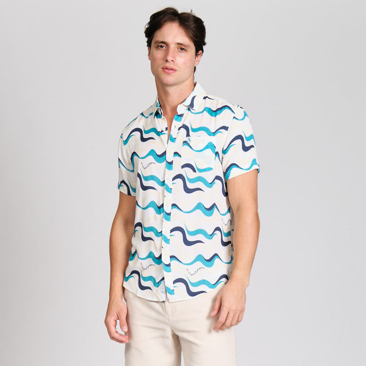 Camisa Manga Corta De Viscosa Full Print Multi Olas
