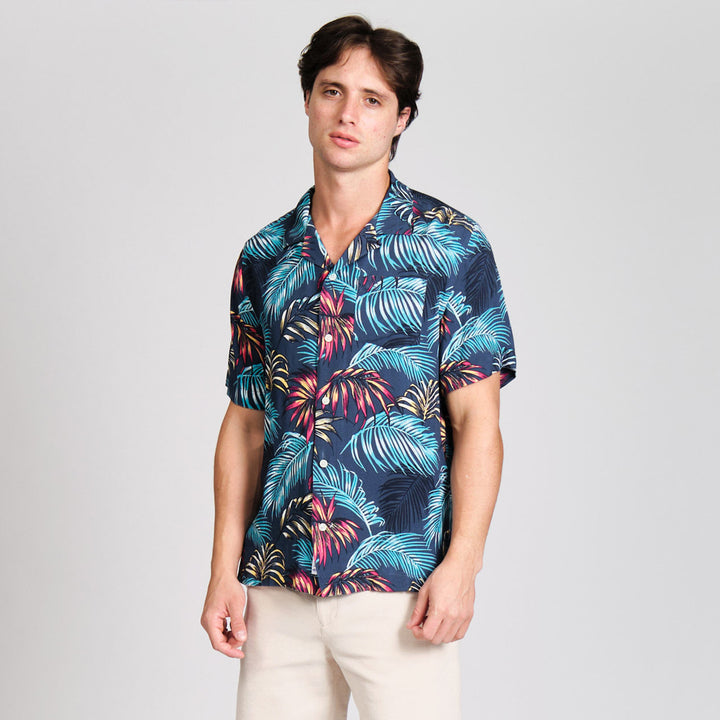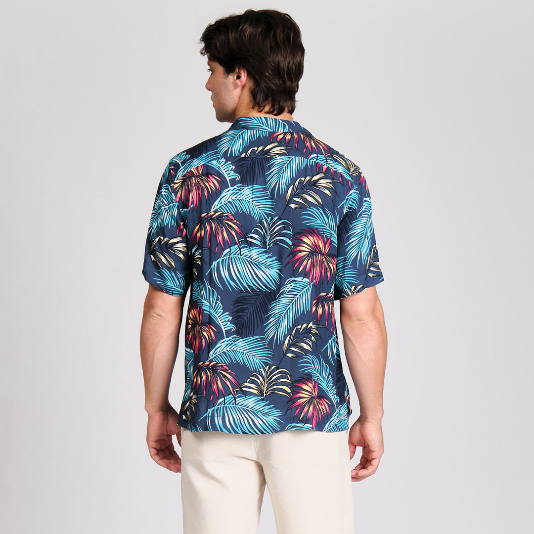 Camisa Manga Corta De Viscosa Full Print Hojas De Palmera