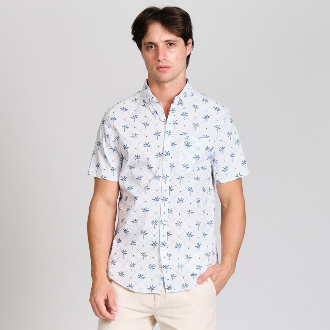 Camisa Manga Corta Stretch Con Pequeños Mosaicos De Palmera