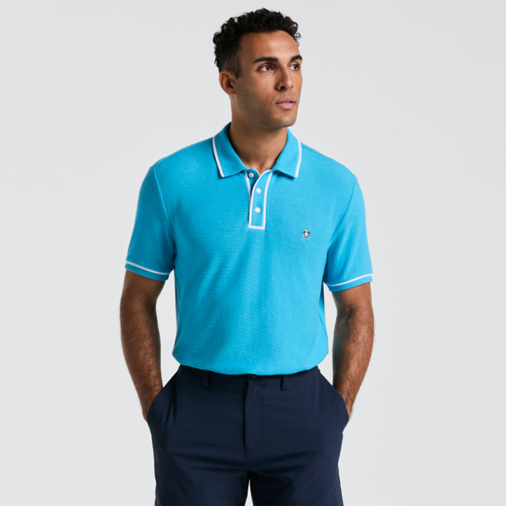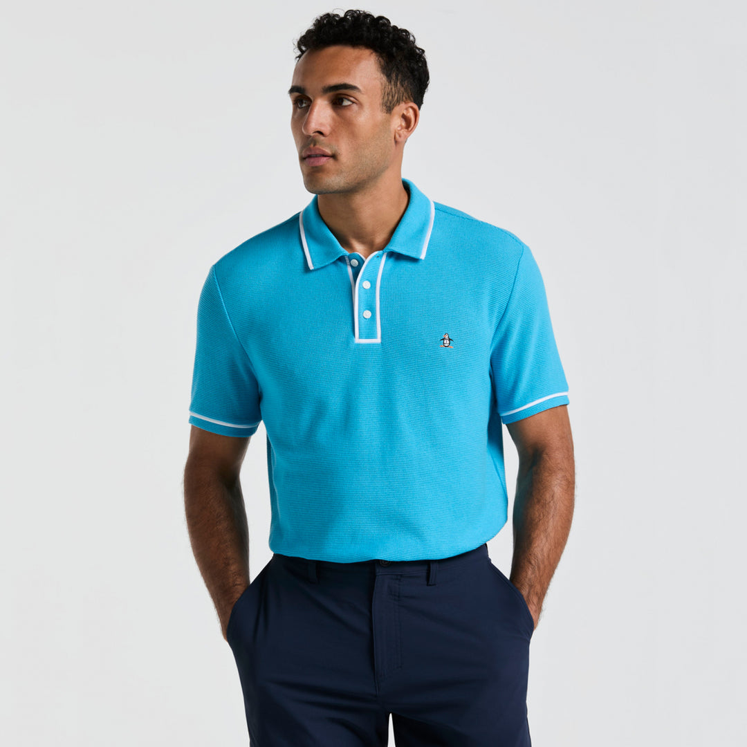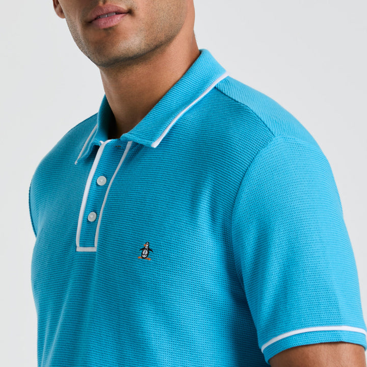 Mantente fresco y cómodo con nuestra polo. Confeccionada con malla de algodón orgánico transpirable, esta camisa de corte entallado presenta un elegante cuello tipo polo y una tapeta de tres botones. Perfecta para esos calurosos días de verano, esta camisa con cuello para hombre te mantendrá luciendo elegante y sintiéndote fresco.