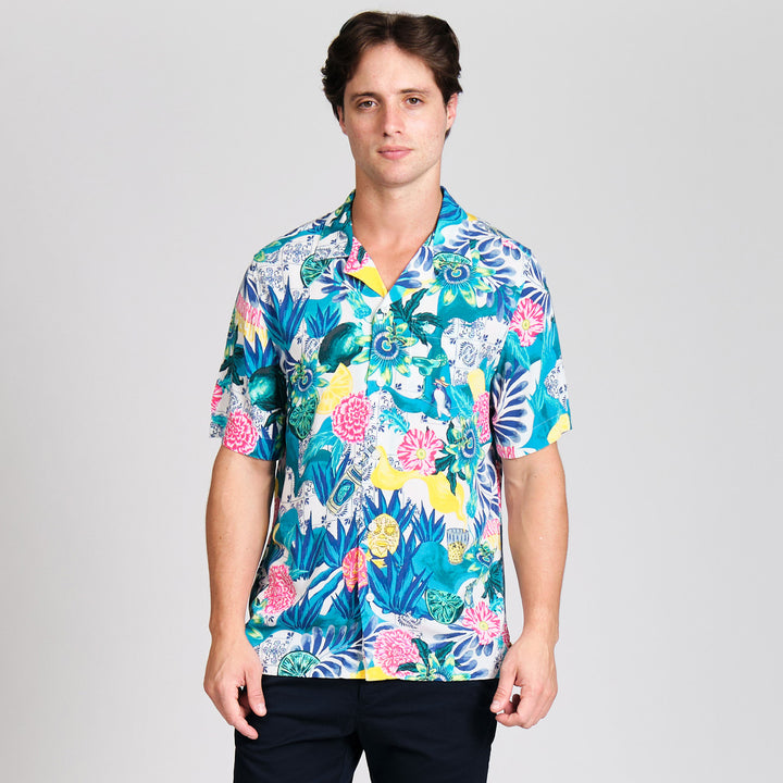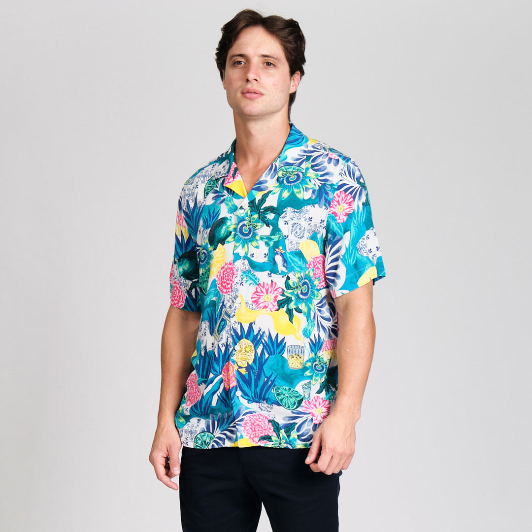 Esta camisa de manga corta en viscosa es perfecta para un look colorido y primaveral. Con su estampado floral de colores vibrantes, te hará destacar en cualquier ocasión. Además, su tela suave y fresca te brindará comodidad y estilo. ¡Hazte con ella ahora y dale a tu armario un toque de alegría!