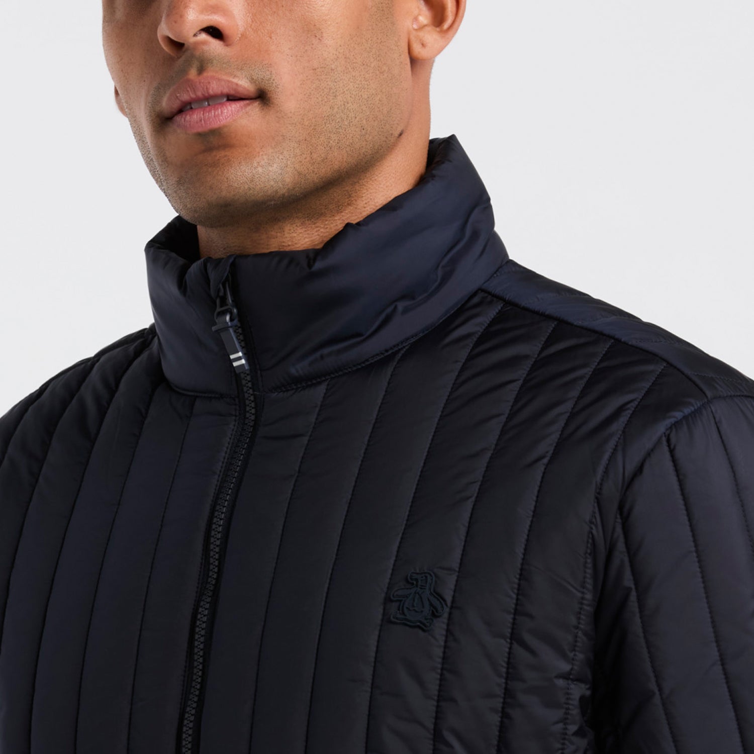 Esta chamarra acolchonada en franjas verticales es tu aliada perfecta para enfrentar el día con estilo y comodidad.