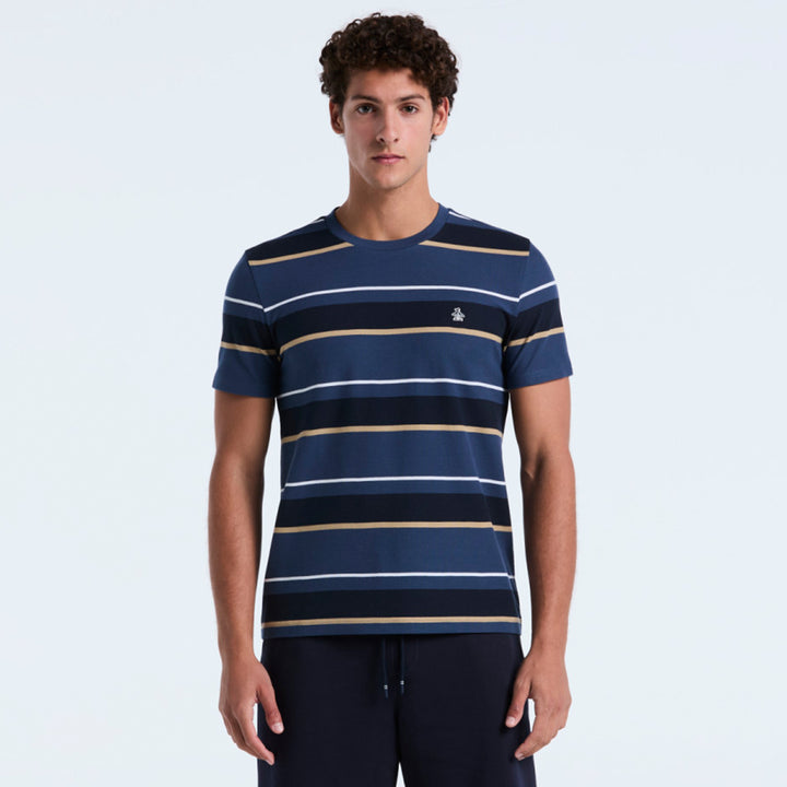 Esta camiseta Original Penguin para hombre te ofrece un estilo informal. Esta cómoda camiseta de manga corta está confeccionada en algodón para una comodidad transpirable. El corte entallado y el tejido de piqué combinan estilo y comodidad. Las rayas horizontales le dan un look atemporal y relajado que combina a la perfección con vaqueros y shorts.