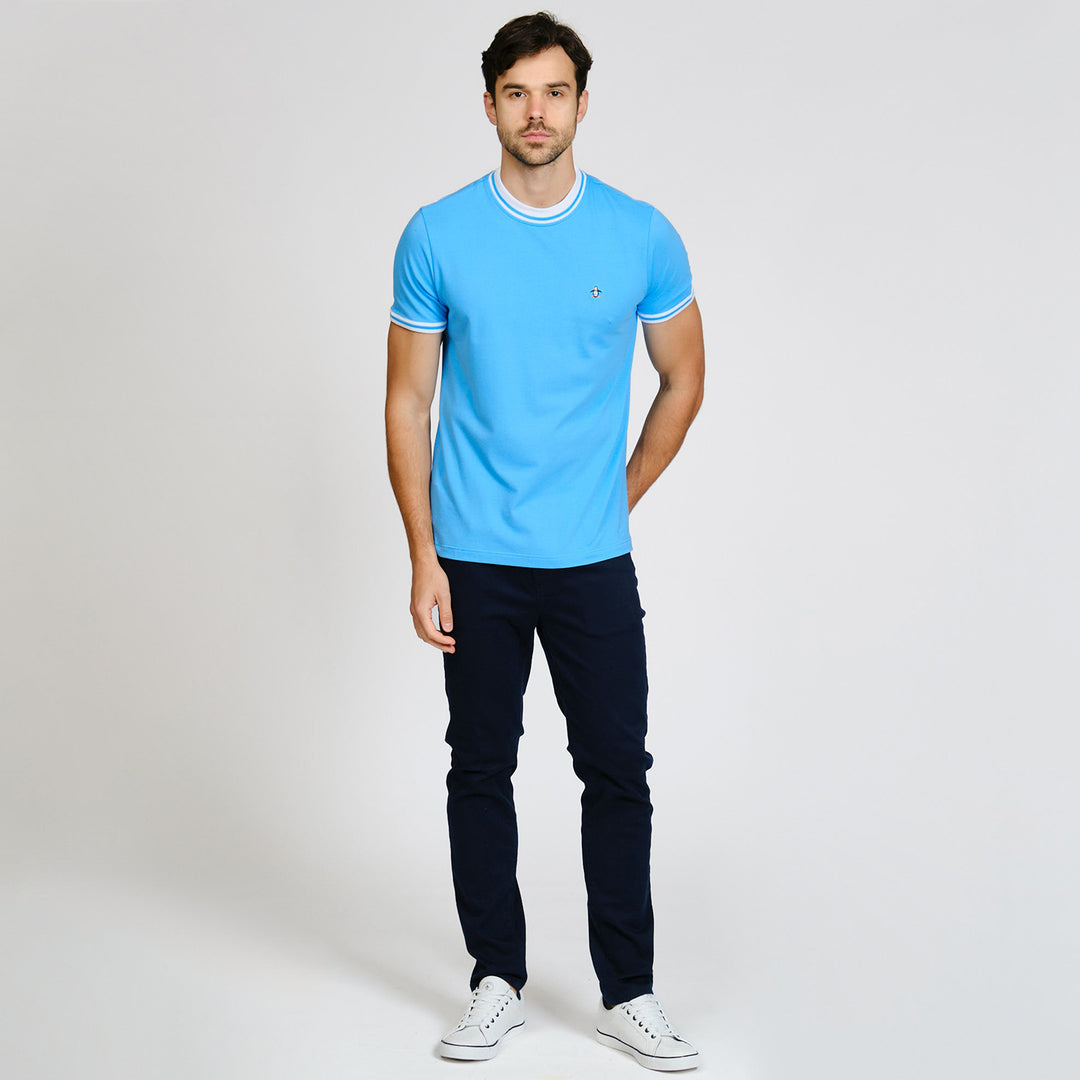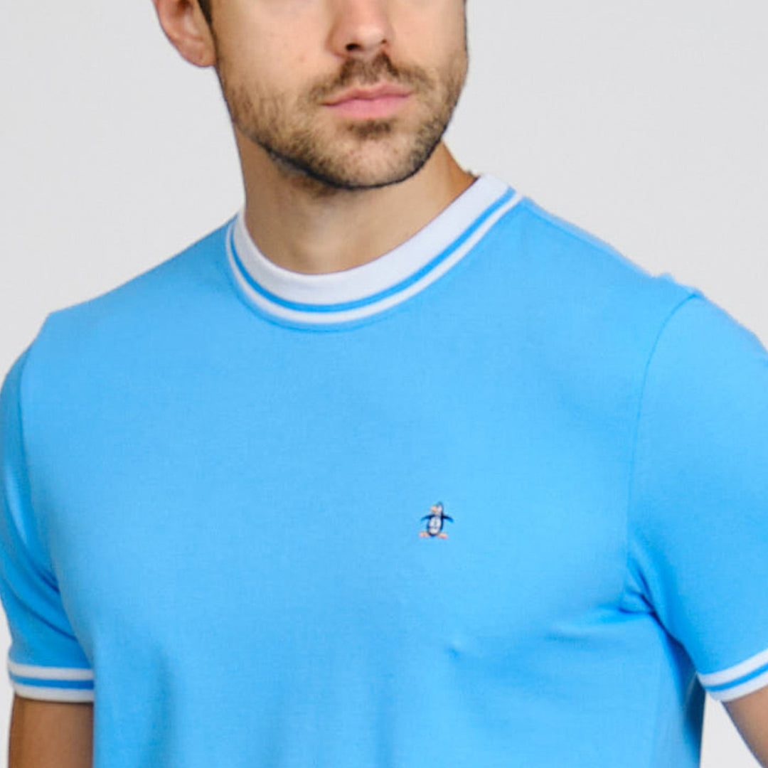 Dale un toque de distinción a tus básicos con esta camiseta de cuello redondo Original Penguin. Esta elegante camiseta para hombre está confeccionada en una mezcla de algodón orgánico con tejido de piqué para una textura sutil. Su moderno corte entallado, el cómodo cuello acanalado y los ribetes en contraste la convierten en la prenda perfecta para tu armario.